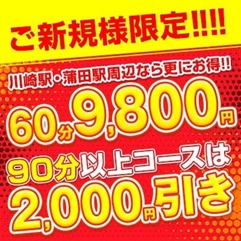 60分9,800円(川崎&蒲田エリアのみ)