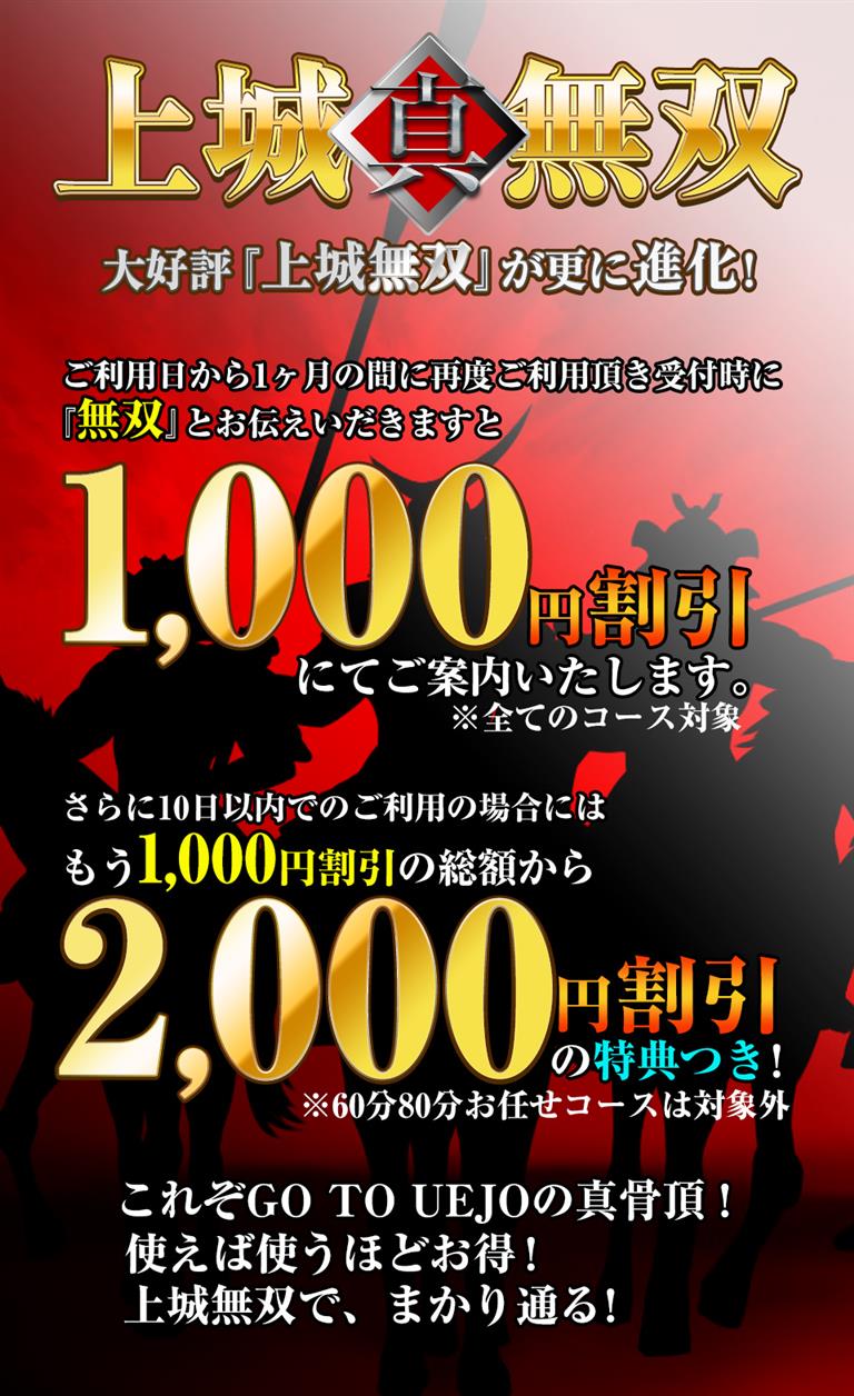 ※イベント適用はあくまで自己申告になります。ご利用の際は必ず「無双」とお伝え下さい。